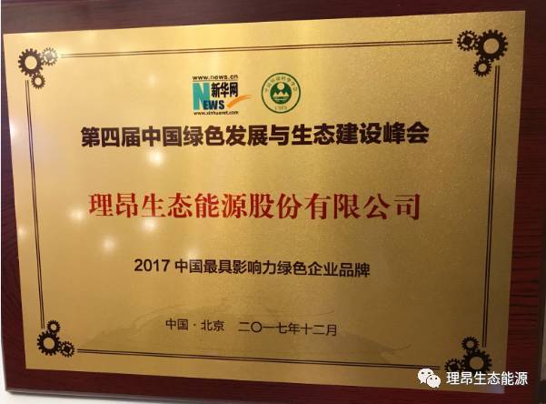理昂生态荣获“2017中国最具影响力绿色企业品牌”称号